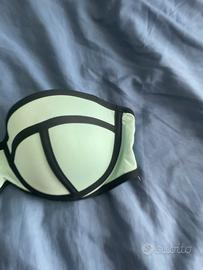 Solo pezzo sopra costume, dalla foto il colore non rende, celeste chiaro pastello e righe nere, molto rigido, calza una seconda di coppa. Solo scambio a mano a roma in zona centro/prati o balduina.