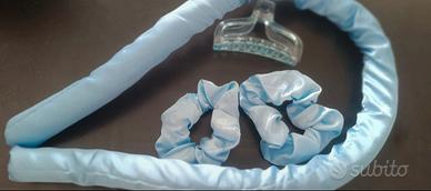 1 - Fascia per riccci senza calore, comprende un tubolare in polistirene espanso ( EPS) rivestito in raso, 2 elastici a nastro e una pinza grande. Facile da usare, basta prima fissare il tubolare sulla testa con la pinza ai capelli, avvolgere i capelli attorno al tubolare arricciacapelli senza calore ( può essere un aiuto spruzzare prima spry fissante) , e fissarli con gli elastici a nastri. Risparmiando tempo facendolo prima di andare al letto, per svegliarsi con i capelli a boccoli pronti.