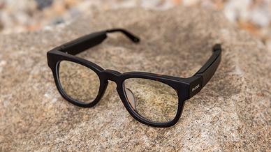 occhiali già con le lenti adatte ad uso pc, l'audio con il 50% di potenza che basta e avanza in ufficio dura tranquillamente 4h e si ricarica con la custodia in 30 minuti. la custodia permette quasi 3 giorni di utilizzo.