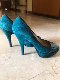 Vendo scarpe colore petrolio in camoscio e punta in vernice , n. 35