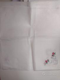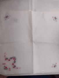 Vendo 6 fazzoletti da donna in finissimo cotone ricamati a mano negli anni 90 - mai usati. cm. 28 - ricami diversi come da foto - piccoli puntini gialli per la lunga conservazione