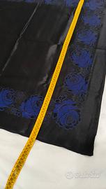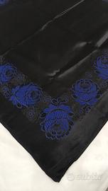 Fazzoletto antico in seta nero e fiori blu/viola, in eccellenti condizioni. Adatto per il costume sardo, misure in foto.