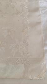 Fazzoletto in seta antico color avorio. Presenta alcune macchie date dall'età del capo, tutte visibili dalle foto. È stato lavato, igienizzato e smacchiato il più possibile. Misure 73x73 cm