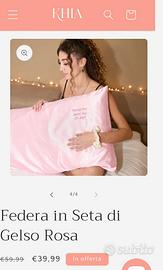 Federa in pura Seta di gelso, colore rosa, bianco o beige. Personalizzabile con una frase o un nome a scelta. Splendido regalo con dedica. Vedi il nostro Brand: KHIA IT