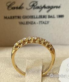 ANELLO FEDINA A 9 DIAMANTI IN ORO GIALLO 750°/°° - 18 kt. CON 9 DIAMANTI* NATURALI TAGLIO BRILLANTE DIAMANTI ct. : 0,32 - Colore : G / Purezza : VVS PESO ORO gr. : 3,10 MISURA DEL DITO: 14 1/2 (è possibile cambiare misura dell'anello per qualsiasi informazione contattateci) altre foto a richiesta via email spedizione con assicurata tramite Poste Italiane