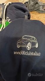 Bellissima felpa nuova con cartellino, FIAT 500 colore blu navi con cappuccio e cerniera completa