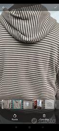 A righe beige/tortora, con cappuccio, buono stato, tasche sul davanti