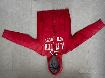 Coppia felpe: Felpa con cappuccio rosso intenso, dal look sportivo e deciso, con maxi stampa “A&FITCH ATH DEPT” in stile college che cattura subito l’attenzione. Tessuto morbido e caldo, interno felpato grigio a contrasto nel cappuccio e coulisse bianca che aggiunge un tocco di carattere, perfetta per outfit casual ma curati in ogni dettaglio. + Felpa Abercrombie & Fitch originale, modello con zip integrale e cappuccio, in morbido cotone felpato grigio melange, caldissima e super comoda per tutti i giorni. Colore grigio con interno in soffice tessuto effetto sherpa per un extra comfort. Logo “FITCH 92” applicato sul davanti in stile vintage college, perfetto per un look casual dal sapore americano. Capi di qualità Abercrombie & Fitch, famoso per le sue felpe morbide, durevoli e dallo stile intramontabile, entrambe tenute con cura, condizioni molto buone: pronte per essere indossate subito.