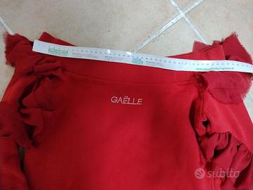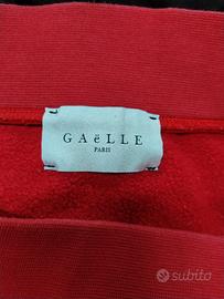 Vendo bellissimo capo firmato Gaëlle Paris, colore rosso vibrante, utilizzabile sia come abito corto che come felpa lunga oversize. Caratteristiche: Design: Scollo a barca e maniche con balze/volant in tessuto leggero tono su tono. Dettagli: Logo "GAËLLE" frontale realizzato con strass luminosi, in ottime condizioni. Taglia: 1 (corrisponde a una S). Composizione: 100% cotone. Stato: Ottime condizioni, colori brillanti e tessuto ben tenuto.