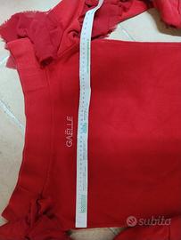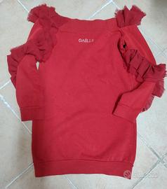 Vendo bellissimo capo firmato Gaëlle Paris, colore rosso vibrante, utilizzabile sia come abito corto che come felpa lunga oversize. Caratteristiche: Design: Scollo a barca e maniche con balze/volant in tessuto leggero tono su tono. Dettagli: Logo "GAËLLE" frontale realizzato con strass luminosi, in ottime condizioni. Taglia: 1 (corrisponde a una S). Composizione: 100% cotone. Stato: Ottime condizioni, colori brillanti e tessuto ben tenuto.