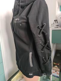 Felpa molto particolare con lacci sulle maniche, cappuccio a punta, è felpata all'interno, taglia 48.