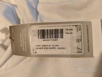 Felpa Adidas Como Calcio bianca come da immagini. Mai indossata, ha ancora il cartellino e confezione originale. Taglia: 13-14 anni