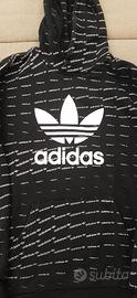 Felpa Adidas garzata, colore nero con scritte bianche Adidas, taglia XS
