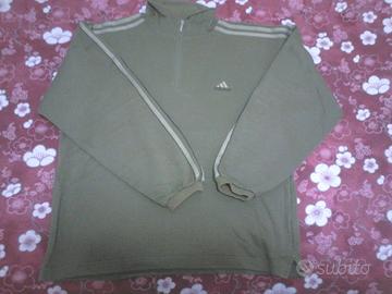Vendo Felpa Adidas, colore verde militare con stemma e strisce gialli, taglia L con zip al collo, originale adidas made in Italy, più che ottime condizioni usata pochissimo.