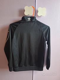 Vendo bellissima felpa sportiva con zip Adidas Originals in colore nero classico. Il capo è caratterizzato dal leggendario logo a trifoglio (Trefoil) stampato in formato maxi sul davanti, che dona un look streetwear grintoso e iconico.