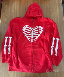 Felpa con cappuccio e zip frontale, caratterizzata da una stampa a scheletro sul petto. Presenta dettagli a forma di orecchie sul cappuccio.