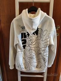felpa Alcott Onepiece bianca Luffy originale, taglia S, morbida, con cappuccio, tasca a marsupio, indossa una volta sola.