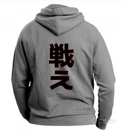 Questa felpa cattura l'essenza del coraggio e della determinazione di Eren Yeager nel suo viaggio di lotta contro il destino avverso. Il design richiama uno dei momenti più iconici della serie, in cui Eren indossa la giacca con lo sguardo deciso, pronto a sfidare il mondo intero per la libertà. Sul retro spicca la scritta "Tatakae" ,il famoso grido di battaglia di Eren, simbolo della sua volontà incrollabile di combattere fino alla fine.