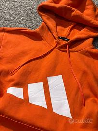 Questa felpa si distingue per il suo colore arancione acceso, ideale per chi vuole farsi notare senza rinunciare alla comodità. Il celebre logo Adidas è ben visibile sul petto (o sulla manica, in base al modello), simbolo di autenticità e qualità sportiva.