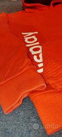 Felpa arancione con cappuccio in cotone dal design urbano, con dettagli arancioni in rilievo su tascone e cappuccio. Sul davanti presenta una scritta bianca in rilievo. Comoda e ideale per uno stile streetwear e acceso.