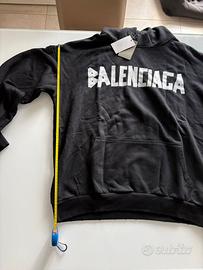 Felpa nera con stampa “BALENCIAGA” frontale e logo + scritta sul retro. Tessuto morbido e di alta qualità, molto comoda e dal taglio oversize tipico del brand.