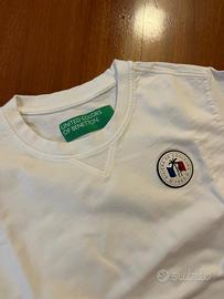 Felpa bianca Benetton, taglia M, veste aderente, indossata qualche volta. È presente un piccola macchia grigia sulla parte posteriore (ultima foro dell'annuncio), per il resto la felpa è in ottime condizioni.