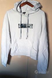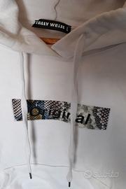 Felpa bianca Tally Weijl femminile sportiva per giovane ragazza donna, taglia L, tessuto maglia in discrete condizioni con cappuccio, piccoli segni di ingiallimento rimovibili con lavaggio.