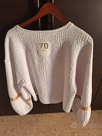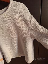 Felpa bianca sportiva senza cappuccio. 💶 💶 💶 Valore di mercato: 230€ (140€ con lo sconto). Puoi anche consultare la ricevuta di acquisto che ho caricato nelle foto. ✅ Utilizzata poco a causa di un rapido cambio di taglia. ✅ Marca "EA7 – Emporio Armani", collezione 7.0, caratterizzata da un'elevata tecnologia progettata per lo sport. ✨ Tessuto leggero (adatto alle mezze stagioni), con trama animalier coccodrillo / pitonato. 📏 Taglia L. - Vestibilità over (larga). - Maniche a sbuffo con un inserto di tessuto rosa. - Logo "7.0" applicato sulle spalle. 🫧 Capi lavati e igienizzati prima della spedizione. 🚚 Spedizione rapida o scambio a mano a Reggio Calabria. 📩 Scrivimi per altre foto o informazioni!