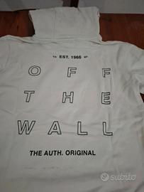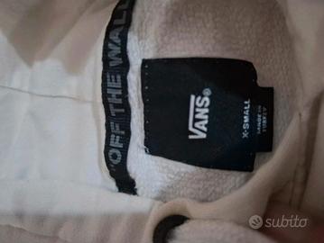 Taglia XS , purtroppo non mi sta più e sono costretto a venderlo. Pochissimi difetti, ottima e stilosa #vans #vansoffthewall #felpabiancaconcappuccio