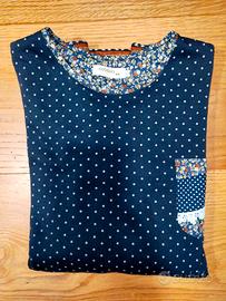 La felpa non è mai stata indossata. E' molto calda, visto che è completamente rivestita con una pelliccetta sintetica. E' indicata la taglia L, ma veste piccolo, direi che corrisponde ad una M. E' un bel capo sportivo che si adatta sia con un jeans che con una gonna tinta unita