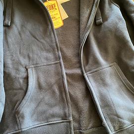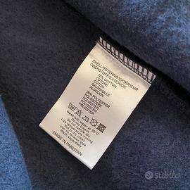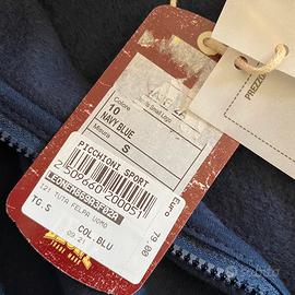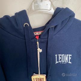 Felpa blu garzata Leone - The Italian Boxing Brand, taglia S. Cappuccio regolabile con cordino, etichetta logo, occhielli in metallo siglato. Bordi a costine. Chiusura con zip metallo, NO tirante! Due tasche, etichetta logo sul dietro. Sottocollo con gros grain siglato. Scritta logo bianca al petto. Lunghezza cm. 61; spalle cm. 46; lunghezza manica, sinistra con etichetta logo, cm. 64. Composizione 70%Cotone 30%Poliestere. Prezzo € 79,00.