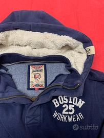 Felpa blu notte Molto spessa Molto calda 85% coton 15% poliestere Con cappuccio e tasconi anteriore Stato ottimo Misure vedi foto
