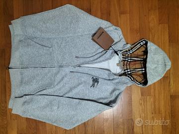 Felpa Burberry grigia con cerniera frontale originale. Taglia M, mai indossata, nuova con cartellino