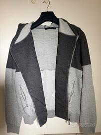 Vendo felpa Calvin Klein Jeans grigia, con cappuccio largo e zip diagonale (tipo chiodo - doppiopetto), materiale cotone poliestere, adatta alla primavera. Usata ma in buone condizioni.