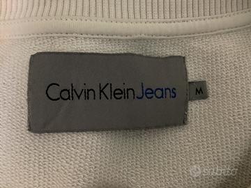 Felpa Calvin Klein Jeans crewneck panna, taglia M, logo CK grande sul petto. Vintage anni 2010, tessuto morbido e caldo. Presenta piccole macchie sulle maniche, quasi invisibili ,già riflesse nel prezzo.