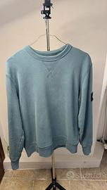 Vendo felpa originale Calvin Klein Jeans color verde salvia/ottanio. Modello girocollo classico con dettaglio a "V" sotto il colletto e l'iconica etichetta monogramma CK cucita sulla manica.