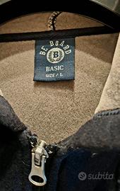 L'immagine mostra una felpa da uomo con cappuccio e chiusura a zip integrale,colore blu, realizzata in un tessuto tecnico che appare essere scuba o neoprene.Questo modello, caratterizzato da un design minimalista e moderno, è identificato come la felpa Be B0ARD BASIC SIZE/L Materiale: Tessuto tecnico (scuba/neoprene) che offre una vestibilità strutturata ma confortevole.Design: Presenta un cappuccio con coulisse regolabile, maniche lunghe con polsini elastici e una pratica tasca a marsupio divisa dalla zip.Dettagli: Interno spesso in contrasto di colore ( grigio) per un maggiore calore e comfort.