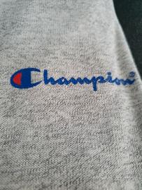 Felpa Champion con cappuccio e zip lunga, colore grigio melange. Cotone 75% ed acrilico 25%.