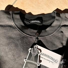 Vendo felpa girocollo color nero slavato, modello con logo circolare e croce ricamati sul petto. Il capo presenta una vestibilità regular e un effetto vintage naturale del tessuto. Caratteristiche principali: • Condizioni: Come nuova, con cartellino. • Colore: Nero antracite / lavaggio acido. • Dettagli: Ricamo in rilievo sul lato cuore, polsini e colletto elastici nuovi. • Taglia: M, vestibilità larga. prezzo trattabile