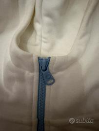 È presente una leggera macchia, molto superficiale, che si rimuove facilmente con un semplice lavaggio (nulla di evidente o permanente). Per il resto la felpa è in buone condizioni generali.
