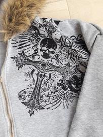 ✨ Felpa Y2K Grigia con Pelliccia e Dettagli Gothic ✨