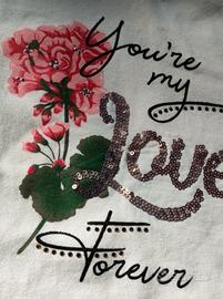 Felpa con cappuccio color panna, con stampa floreale e scritta You're my love forever.