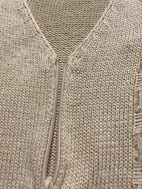 Felpa blu in cotone firmato Trussardi. Taglia 46/48.Maglioncino bianco panna con zip. Taglia 46/48