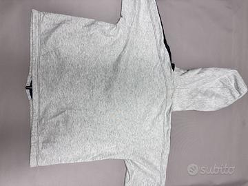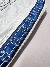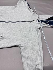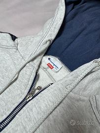 Incredibile felpa con cappuccio Champion Reverse Weave autentica degli anni '90 rara. Caratterizzata dal classico colore grigio mélange con inserti blu navy a contrasto sul cappuccio e sulle maniche. La famosa tessitura "Reverse Weave" di Champion resiste al restringimento e garantisce la massima durata. Chiusura con zip intera e due tasche laterali. Le misure piatte approssimative sono: Punto a punto ascelle: 56 cm Lunghezza totale: 68 cm