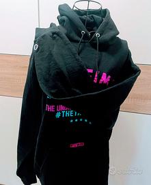 Caratteristiche: Tessuto felpato, vestibilità oversize, scritte lucide, cappuccio con cordoncini