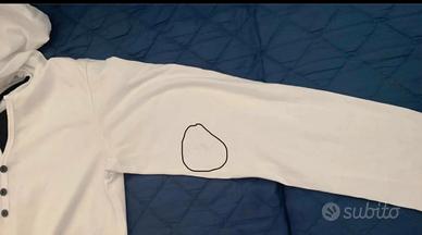Vendo felpa maniche lunghe da uomo bianca con comodo cappuccio del marchio Colt Jeans, taglia S/M. Ha soltanto un piccolo segno di usura sulla manica sx come indicato dalla foto, per il resto è in perfette condizioni.