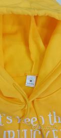 Vendo felpa con cappuccio di colore giallo acceso, taglia M (100% poliestere).