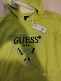 Felpa con cappuccio Guess di colore verde lime, con logo stampato sul davanti.