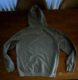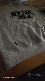 Vendo felpa con cappuccio grigia melange con stampa "NEW YORK BRKLN" in nero sul davanti. La scritta BRKLN (abbreviazione di Brooklyn) è stilizzata con un design tipo college/varsity. La felpa presenta una tasca a marsupio e coulisse sul cappuccio. È un capo casual e versatile, perfetto per tutti i giorni. Le condizioni sono ottime/pari al nuovo.