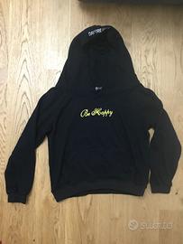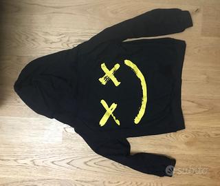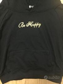 Felpa nera con stampa gialla “Be Happy” sul davanti e grande smiley sul retro 😄